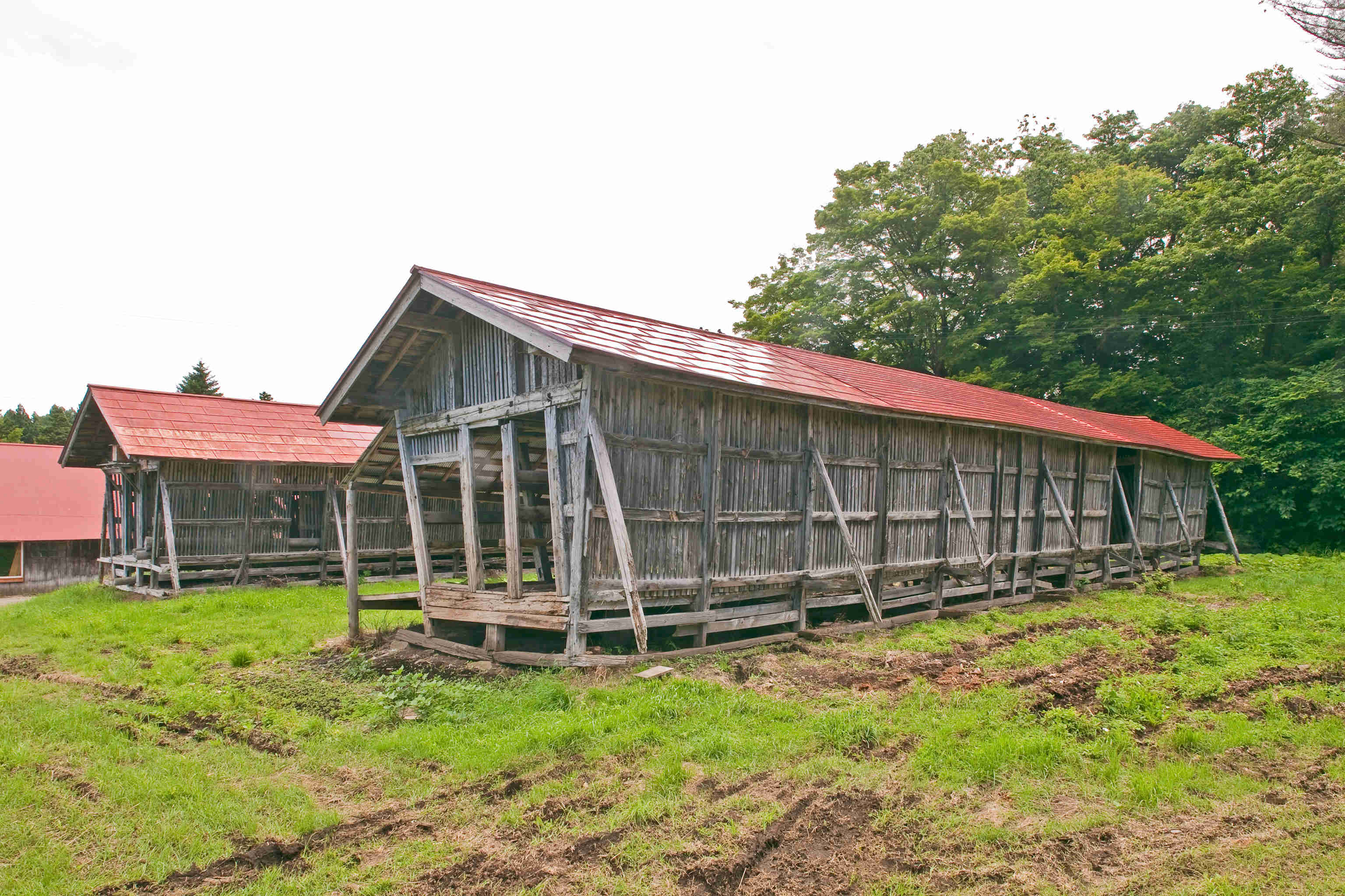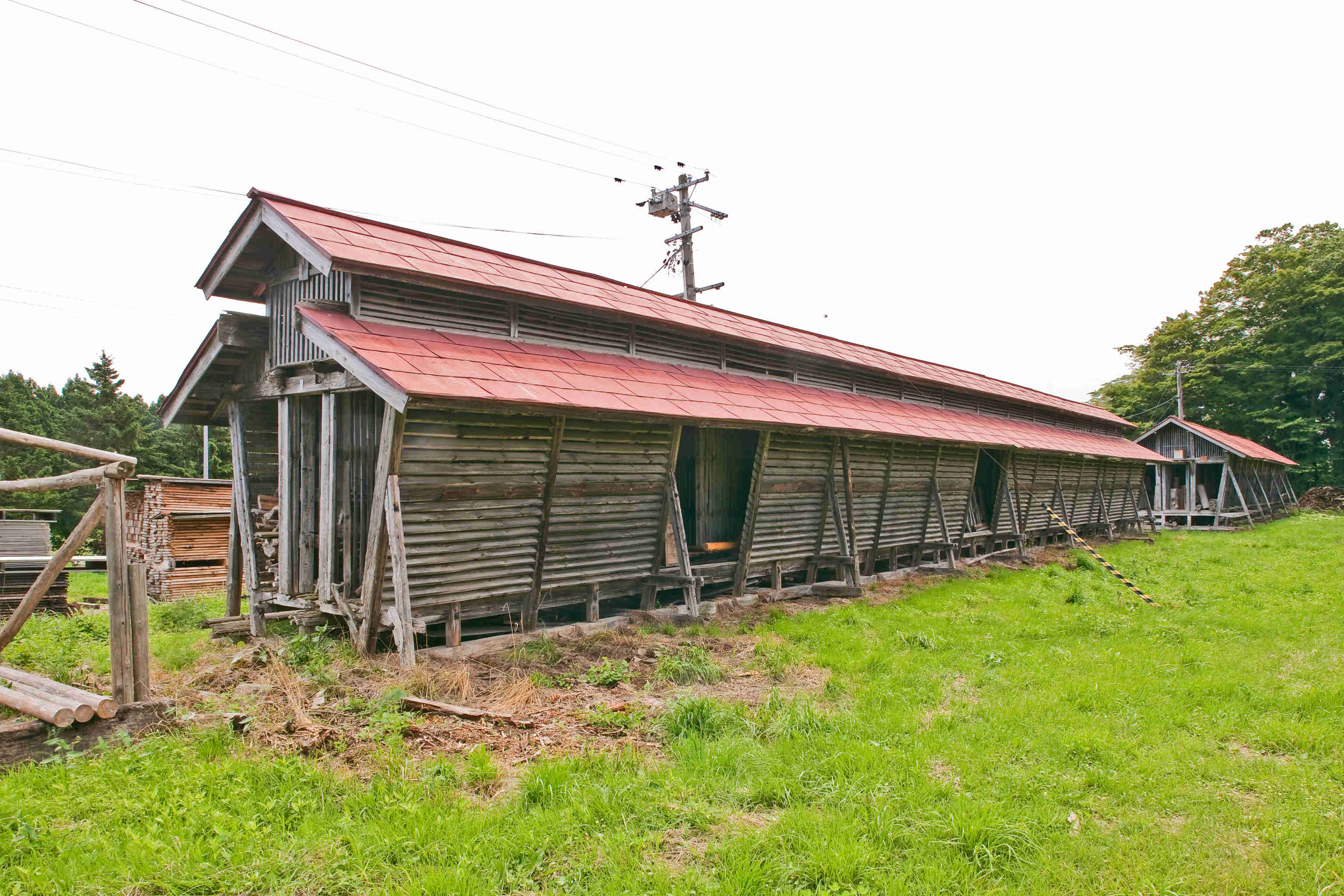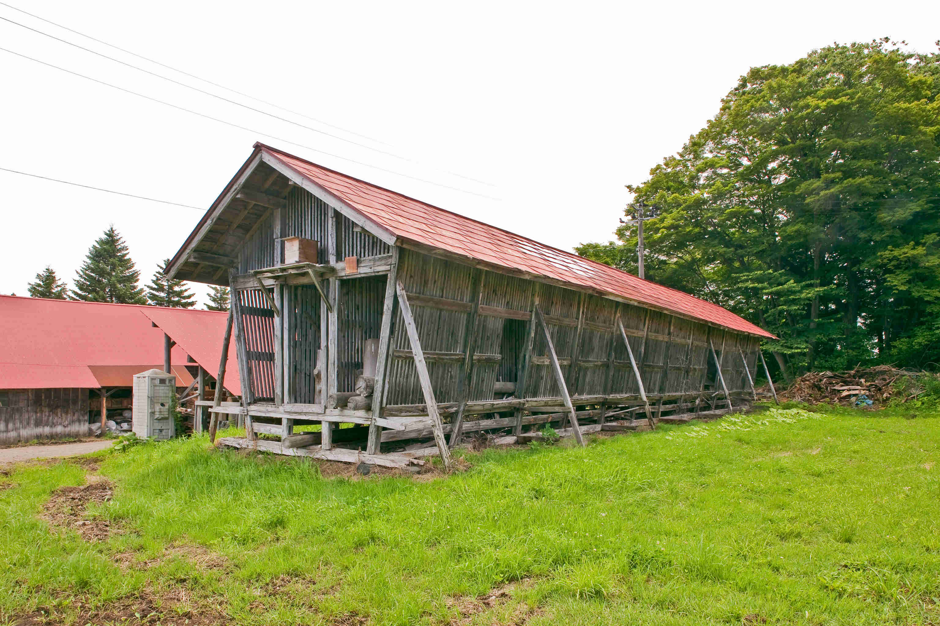 牛の飼料となるトウモロコシ(デントコーン)の乾燥・貯蔵用に建設。現在は木材乾燥用に使用。