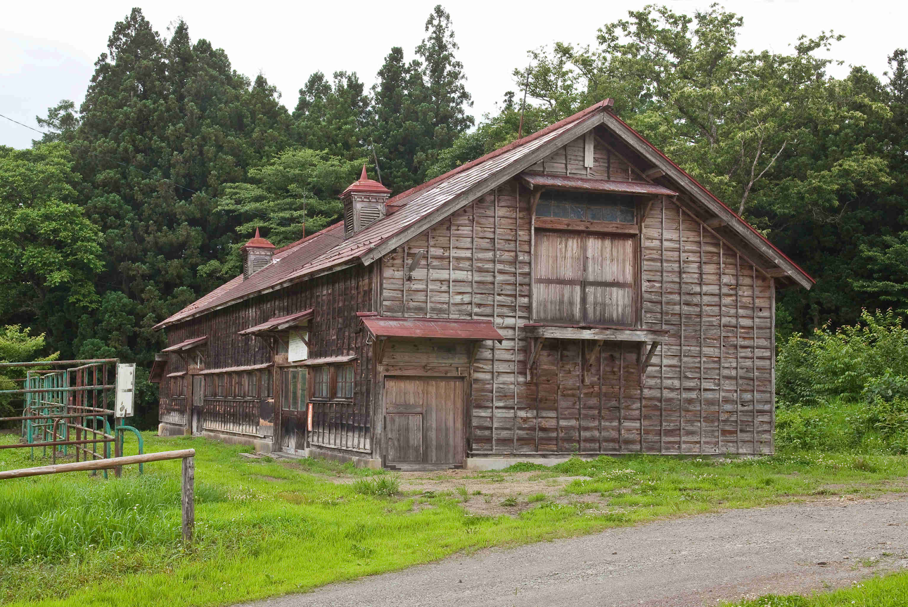 産室を備えた搾乳牛舎として建設。現在はすべて搾乳用に改造。一階は飼育室、二階は牧草貯蔵庫。